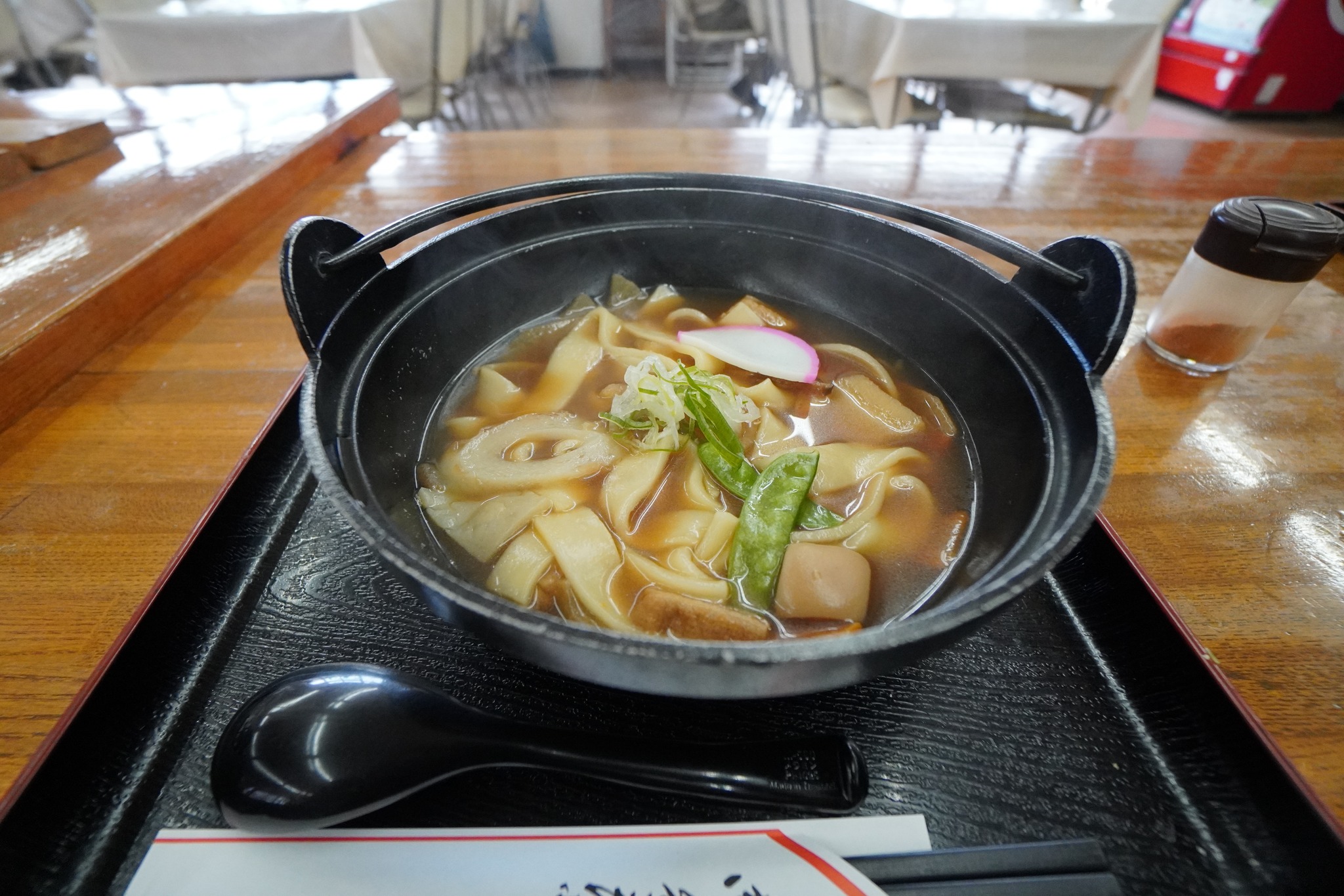 太めの面が食べ応えがあり、私が食べたのはけんちん汁ベースのものでしたが美味しかったです。