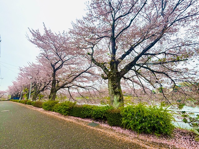 雨で落ちてしまった桜の花びらでピンク色に染まった道路の端も、それもまた綺麗でした!