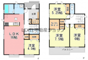 | 築年月 | 2026年4月築 | 間取り | 4LDK (LDK16/洋室4.5/洋室7.5/洋室6/洋室5.2) | ||