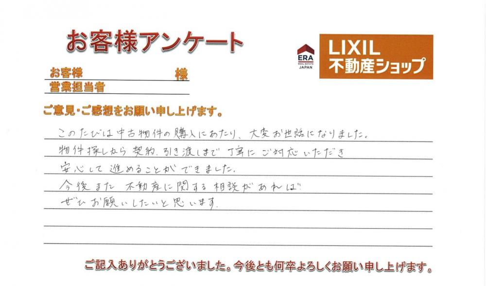 おかげさまでご契約からお引渡しまでとてもスムーズに行えました。