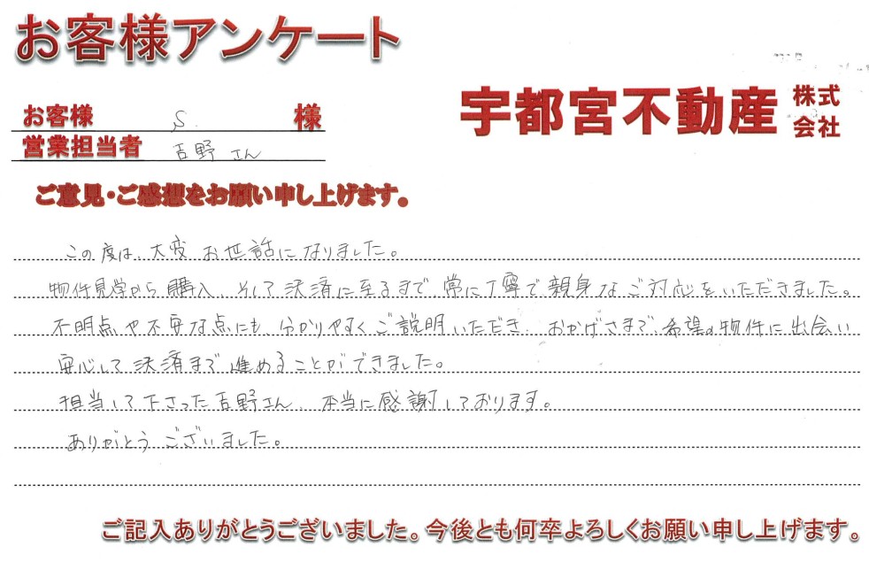 この度は数ある中から当社にお問い合わせ、ご契約頂きありがとうございました。 最初にお会いしてから色々とご不安な事などご共有いただきありがとうございました。 1つ1つクリアになり、ご家族皆様が新居を楽しみに迎えていただけるお家が見つかり本当に良かったです! 新年度は新しいご自宅でご家族皆様で楽しくお過ごし頂ければ幸いです。 お忙しい中ありがとうございました。