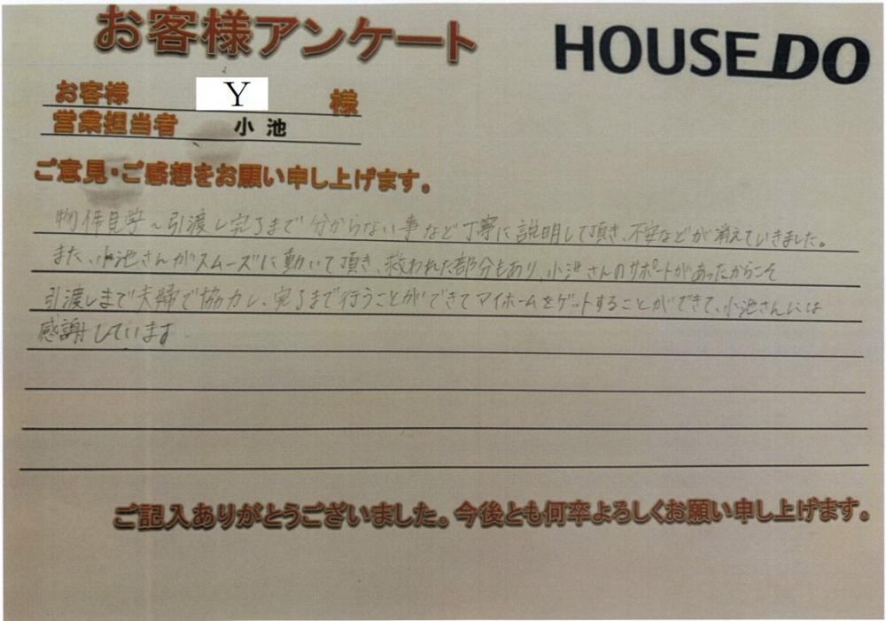 お仕事お忙しい中ご協力いただけたので、無事お引渡しまで進み安心いたしました。